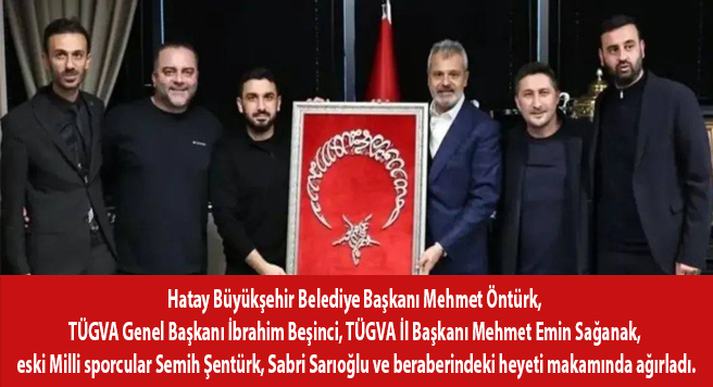 Hatay Büyükşehir Belediye Başkanı Mehmet Öntürk, TÜGVA Genel Başkanı İbrahim Beşinci, TÜGVA İl Başkanı Mehmet Emin Sağanak, eski Milli sporcular Semih Şentürk, Sabri Sarıoğlu ve beraberindeki heyeti makamında ağırladı.